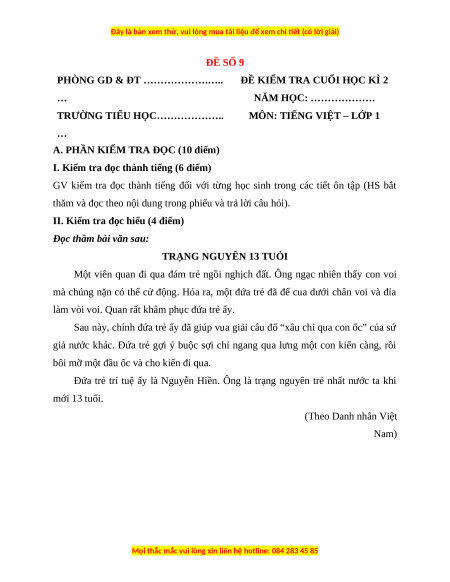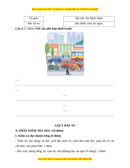 A. PHẦN KIỂM TRA ĐỌC (10 điểm)