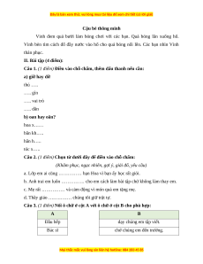 Câu 3. (1 điểm) Nối ô chữ ở cột A với ô chữ ở cột B cho phù hợp: A B Đầu bếp dạy chúng em tập viết. Bác sĩ