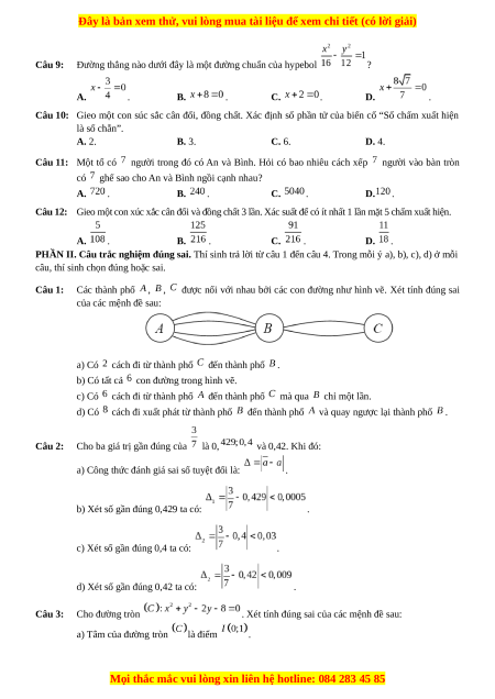 Chúng tôi đảm bảo đủ số lượng đề đã cam kết hoặc có thể nhiều hơn, tất cả có BẢN WORD, LỜI GIẢI CHI TIẾT và tải về dễ dàng.