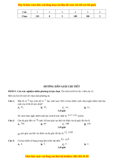 (Mỗi câu trả lời đúng thí sinh được 0,25 điểm) Câu 1 2 3 4 5 6 7 8 9 10 11 12 Chọn D D C C B A C B D B B C PHẦN II.
