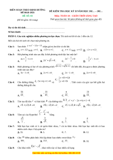 rồi biến đổi, thu gọn ta được phương trình nào sau đây? A. . B. . C. . D. . Câu 4: Cho đường thẳng và