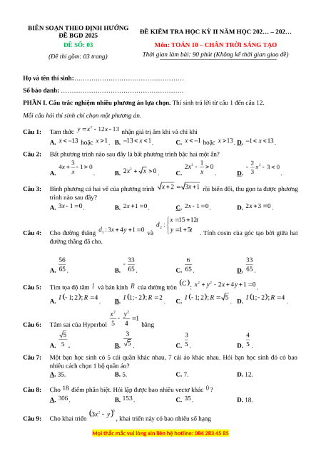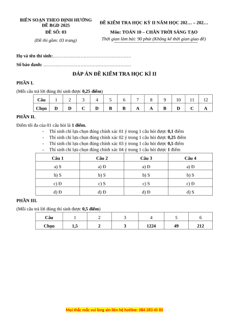 ĐỀ KIỂM TRA HỌC KỲ II NĂM HỌC 202… – 202… ĐỀ BGD 2025 ĐỀ SỐ: 03