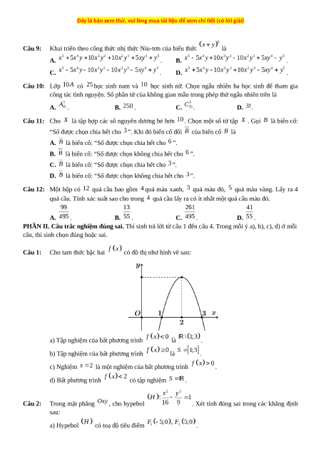 Khai triển theo công thức nhị thức Niu-tơn của biểu thức là A. . B. . C. . D. . Câu 10: Lớp có học sinh nam và