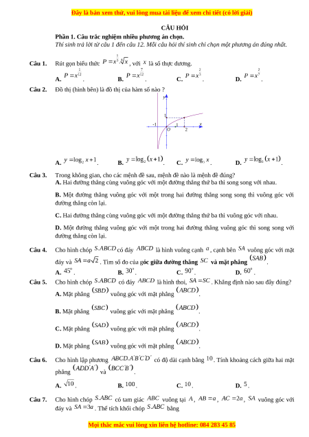 , với là số thực dương. A. . B. . C. . D. . Câu 2.