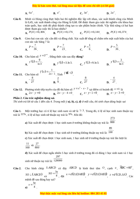 được tham gia cuộc thi là bao nhiêu? A. . B. . C. . D. . Câu 9.