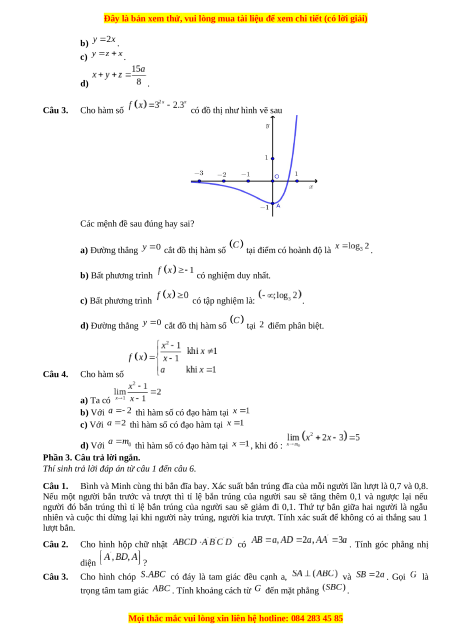 b) . c) . d) . Câu 3. Cho hàm số