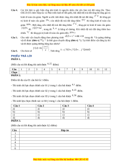 vật đi được quãng đường bằng bao nhiêu? Câu 6. Cho hàm số . Tính tổng . PHIẾU TRẢ LỜI PHẦN 1.