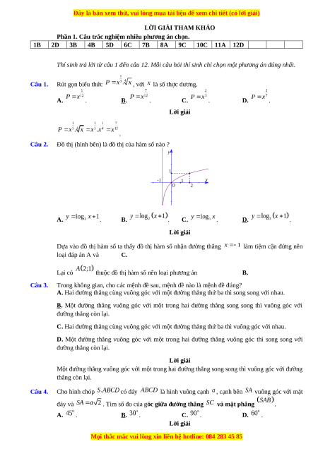 Thí sinh trả lời từ câu 1 đến câu 12. Mỗi câu hỏi thí sinh chỉ chọn một phương án đúng nhất. Câu 1. Rút gọn biểu thức
