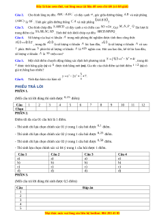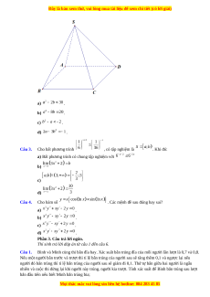 d) Việc ném bóng vào rổ của An và Bình sẽ không phụ thuộc vào việc được ném trước hay ném sau. Câu 2. Cho hình chóp có