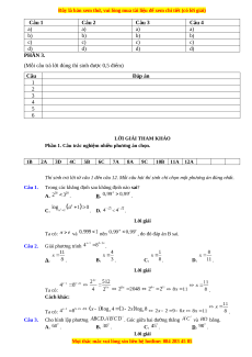 (Mỗi câu trả lời đúng thí sinh được điểm) Câu 1 2 3 4 5 6 7 8 9 10 11 12 Chọn PHẦN 2.
