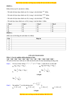 Phần 1. Câu trắc nghiệm nhiều phương án chọn. 1D 2D 3B 4A 5D 6D 7A 8C 9B 10A 11B 12B