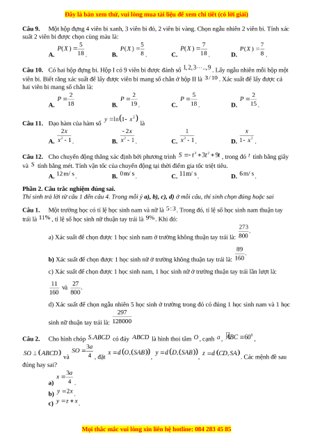 Chúng tôi đảm bảo đủ số lượng đề đã cam kết hoặc có thể nhiều hơn, tất cả có BẢN WORD, LỜI GIẢI CHI TIẾT và tải về dễ dàng.
