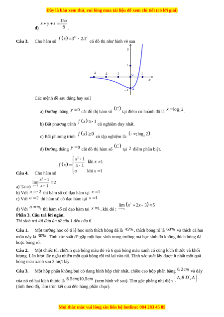 d) . Câu 3. Cho hàm số
