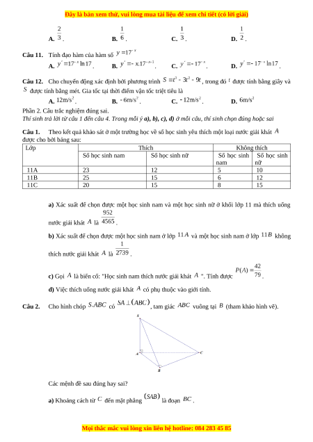 d) Việc thích uống nước giải khát có phụ thuộc vào giới tính. Câu 2. Cho hình chóp có , tam giác