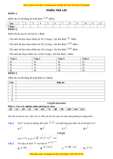 (Mỗi câu trả lời đúng thí sinh được điểm) Câu 1 2 3 4 5 6 7 8 9 10 11 12 Chọn PHẦN 2.