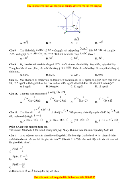 . Tính thể tích khối chóp theo . A. . B. . C. . D. . Câu 9.