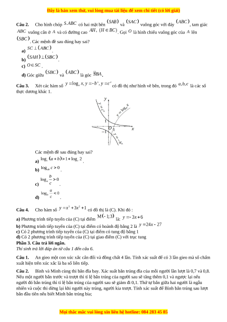 . Các mệnh đề sau đúng hay sai? a) . b) . c) . d) Góc giữa và là góc . Câu 3. Xét các hàm số