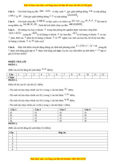 Thí sinh trả lời đáp án từ câu 1 đến câu 6. Câu 1.