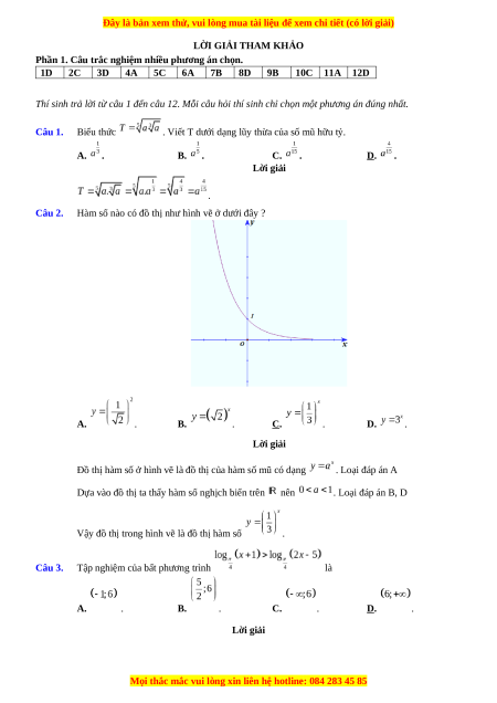 . Viết T dưới dạng lũy thừa của số mũ hữu tỷ. A. . B. . C. . D. . Câu 2.
