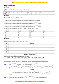 (Mỗi câu trả lời đúng thí sinh được điểm) Câu 1 2 3 4 5 6 7 8 9 10 11 12 Chọn PHẦN 2.