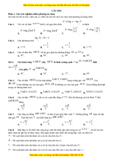 . Khi đó khoảng cách từ đỉnh đến bằng A. . B. . C. . D. . Câu 7. Cho lăng trụ đứng