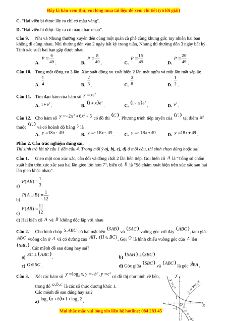 Câu 11. Tìm đạo hàm của hàm số A. . B. . C. . D. . Câu 12. Cho hàm số có đồ thị