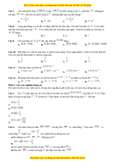 Lấy lần lượt một viên bi từ hộp và không trả lại, thực hiện hai lần liêp tiếp. Tính xác suất để: lấy được 2 viên bi cùng màu; Câu 3. Cho hình chóp