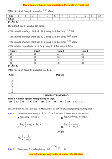 (Mỗi câu trả lời đúng thí sinh được điểm) Câu 1 2 3 4 5 6 7 8 9 10 11 12 Chọn PHẦN 2.
