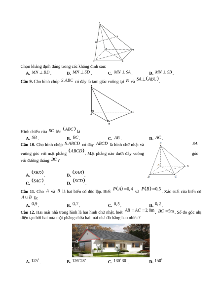 Câu 10. Cho hình chóp có đáy là hình chữ nhật và