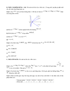 câu, thí sinh chọn đúng hoặc sai. Câu 1. Cho