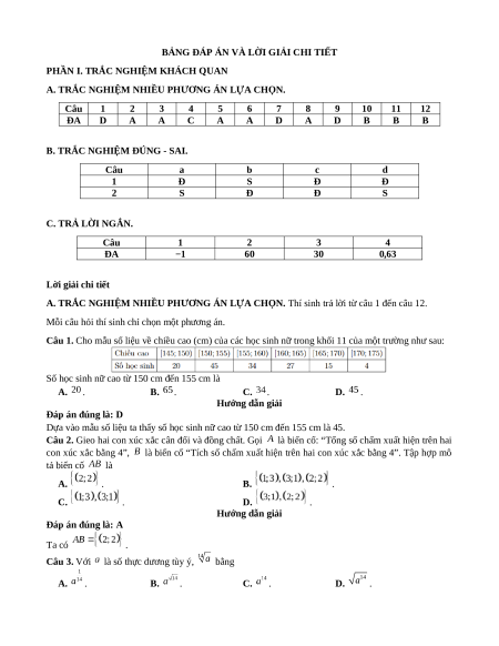 A. TRẮC NGHIỆM NHIỀU PHƯƠNG ÁN LỰA CHỌN. Thí sinh trả lời từ câu 1 đến câu 12.