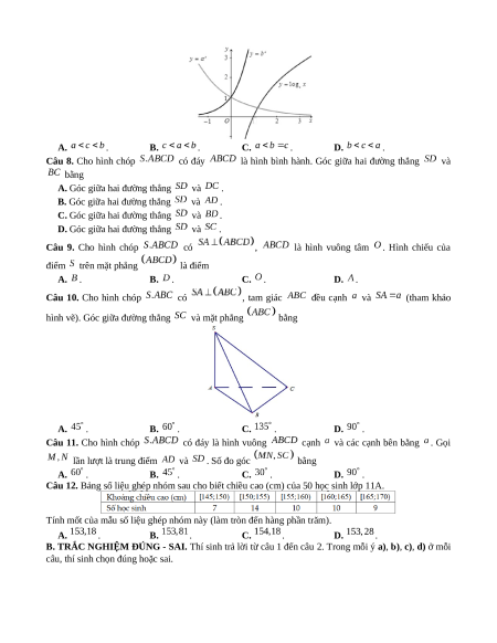 Câu 12. Bảng số liệu ghép nhóm sau cho biết chiều cao (cm) của 50 học sinh lớp 11A.