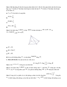 Câu 1. Một hộp đựng 20 tấm thẻ cùng loại được đánh số từ 1 đến 20. Rút ngẫu nhiên một tấm thẻ trong