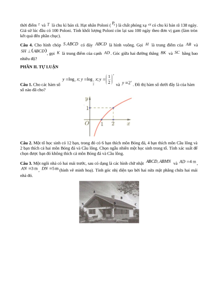 Câu 3. Trong vật lí, sự phân rã các chất phóng xạ được cho bởi công thức . Trong đó,