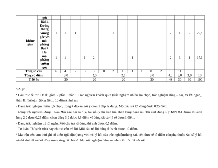 * Cấu trúc đề thi: Đề thi gồm 2 phần: Phần I. Trắc nghiệm khách quan (trắc nghiệm nhiều lựa chọn, trắc nghiệm đúng – sai, trả lời ngắn),