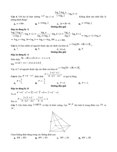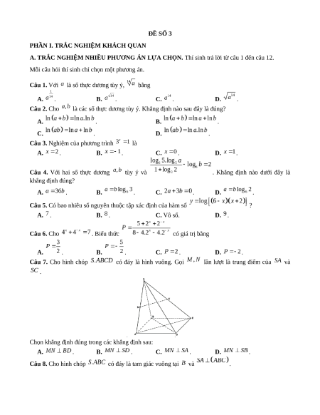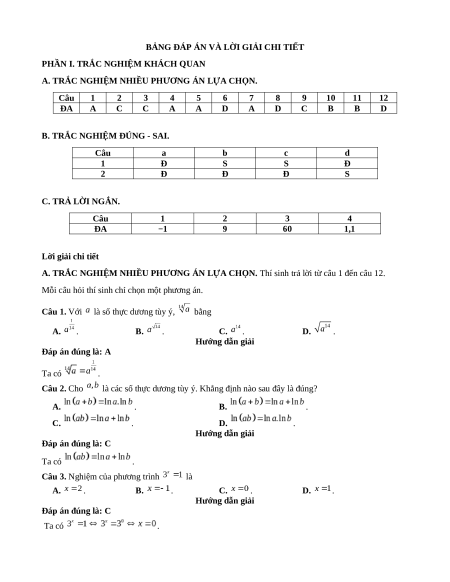 Câu 1. Với là số thực dương tùy ý, bằng A. . B. . C. . D. . Câu 2. Cho