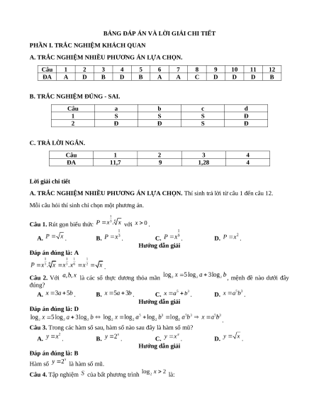 Câu 1. Rút gọn biểu thức với . A. . B. . C. . D. . Câu 2. Với