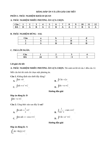 là hai nguyên hàm của hàm số và thỏa mãn . Khi đó, nếu thì bằng bao nhiêu? Câu 2. Biết và . Khi đó bằng bao nhiêu?