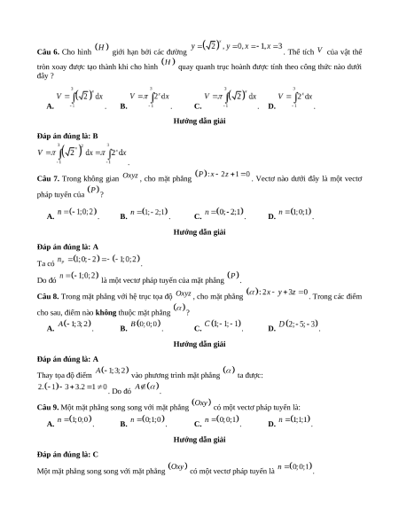 Câu 1. Cho hình phẳng