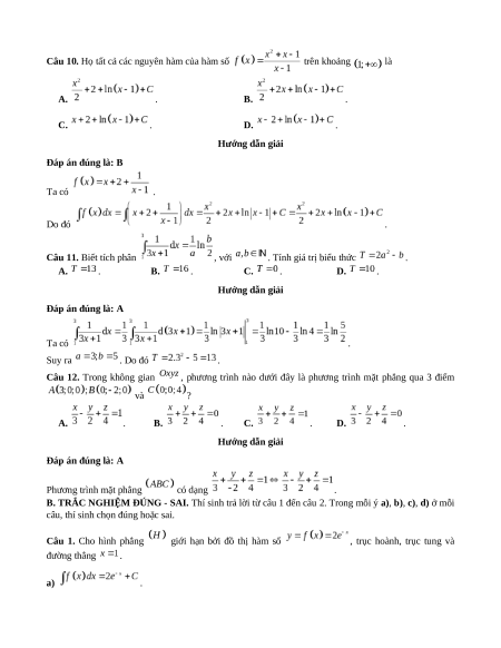 Câu 10. Họ tất cả các nguyên hàm của hàm số trên khoảng là A. . B. . C. . D. .