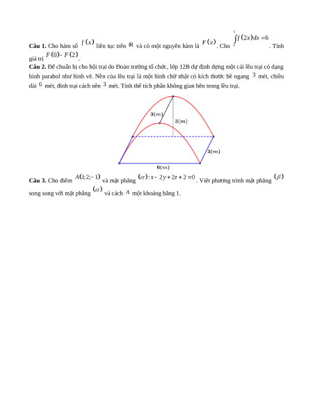 Câu 2. Để chuẩn bị cho hội trại do Đoàn trường tổ chức, lớp 12B dự định dựng một cái lều trại có dạng