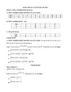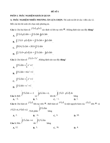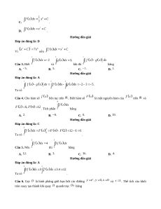 liên tục trên . Biết hàm số là một nguyên hàm của trên và . Tích phân bằng A. B. C. D. Câu 5. Nếu thì bằng A. B. C. D.