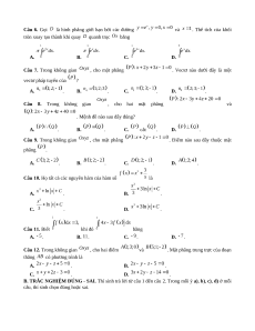 C. TRẢ LỜI NGẮN. Thí sinh trả lời câu 1 đến câu 4. Câu 1. Biết (với ). Tính giá trị của . Câu 2. Biết và . Tích phân bằng bao nhiêu?