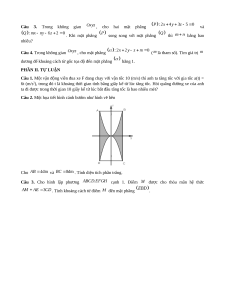 Câu 3. Trong không gian , cho hai mặt phẳng và . Khi mặt phẳng