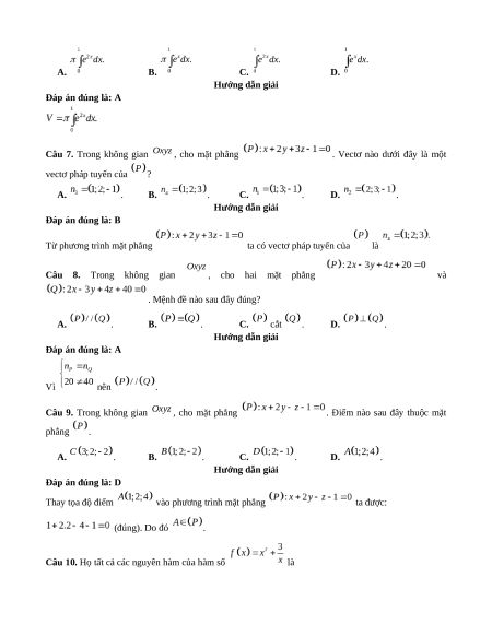 Câu 2. Trong mặt phẳng , cho mặt phẳng đi qua và có vectơ pháp tuyến .