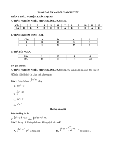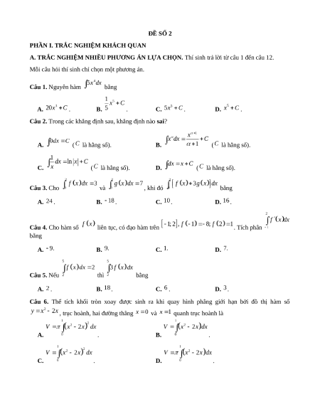 Mỗi câu hỏi thí sinh chỉ chọn một phương án. Câu 1. Nguyên hàm bằng A. . B. . C. . D. .