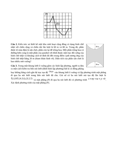 Câu 2. Kiến trúc sư thiết kế một khu sinh hoạt cộng đồng có dạng hình chữ