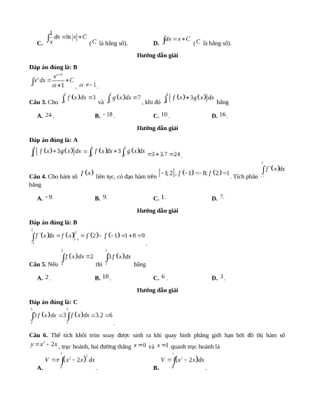 liên tục, có đạo hàm trên . Tích phân bằng A. B. C. D. Câu 5. Nếu thì bằng A. . B. . C. . D. .