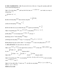 là hai nguyên hàm của hàm số và thỏa mãn . Khi đó, nếu thì bằng bao nhiêu? Câu 2. Biết và . Khi đó bằng bao nhiêu?