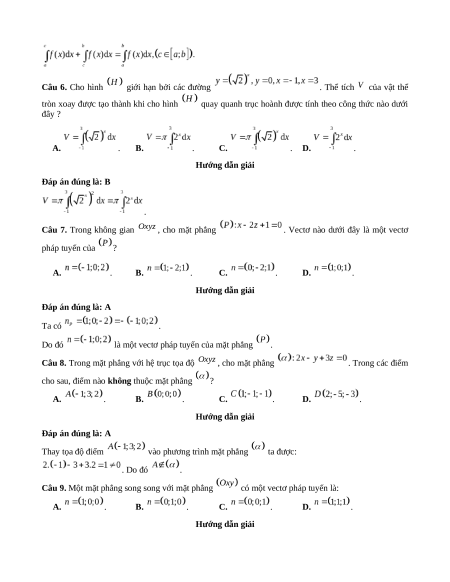 Câu 9. Một mặt phẳng song song với mặt phẳng